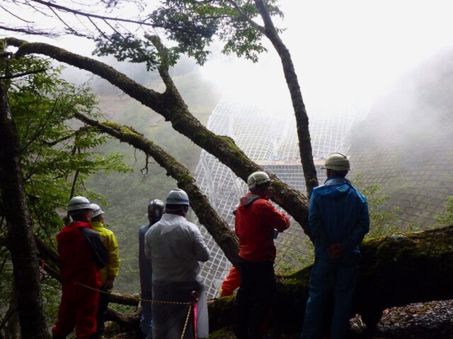 午後は参加者とともに実際の現場へ行き、ケーブルクレーンの稼働状況や工事の目的を掘り下げて説明を行いました。